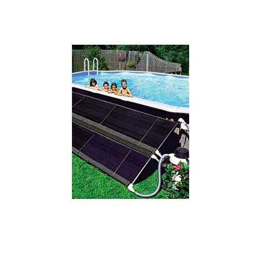Heat Your Pool With The Power Of The Sun! Our Universal Solar Heating System has been designed for above ground pools up to 12 feet round and is available as a 2' x10' panel and includes everything you need for installation. Engineered from lightweight, durable black polyolefin, our Solar Heating Systems feature state-of-the-art tube construction that creates a larger surface area which optimizes heat transfer of the sun's energy to your pool. Your pool's pump circulates pool water through the solar panels where it is heated, and then returns the warmed water into your swimming pool. This process allows more of the water that passes through the panels to be heated higher, faster and more efficiently. All panels include the hardware needed to mount on roofs, racks or the ground. Extra panels can be added as needed and when used in conjunction with a solar blanket you'll have the ultimate heating system - absolutely free! 5 Year Warranty. Read more...