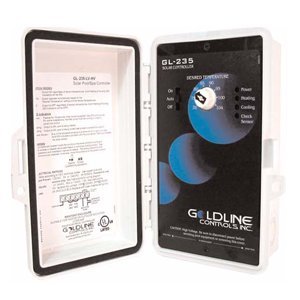 SOLAR POOL CONTROL, 12/24 VAC AND 120/240 VAC OUTPUT The GL-235 is designed to meet the need for easy installation, dependable operation, and serviceability. The GL-235 incorporates unique, microprocesser based construction to ensure reliability and accurate performance. The GL-235 offers advanced operating features to provide differential temperature control, selectable high limit, programmable recirculation freeze protection, nocturnal cooling and optional booster pump control. 115/240 VAC input, 12/24VAC valve output, one 1HP/20A@120VAC, 2HP/20A@240VAC dry contact SPDT output for booster pump or time clock override. Automatic heating If the solar collectors are warmer than the pool water by 4or more, and the pool is below the selected desired temperature, the valve will rotate allowing heat collection. This heat collection will stop when the solar sensor falls to within 1.5F of the pool temperature or the pool temperature exeeds the "desired temperature" set on dial. Automatic cooling (Field selectable option) If the solar collectors are cooler than the pool water by 6F or more, and the pool is above the selected desired temperature, the valve will rotate allowing cooling via the solar collectors. The heat dissipation will stop when the collectors rise within 3F of the pool temperature or the pool temperature is lowered below the set desired temperature. Single setting for desired temperature The GL-235 logic is set by a single dial adjustment with the desired pool/spa temperatures clearly indicated. The dial is calibrated with the temperatures from 70F to a high of 104F for quick and easy, user-friendly operation. The pool temperature set indicates set pool/spa temperature, and the GL-235 will automatically deter-mine if the water should be solar heated or cooled, thus maximizing the system capabilities. Terminal strip connections For input power, and sensor inputs. Controls also have industry standard 3 pin connectors for both forward and reverse valve actuator Read more...